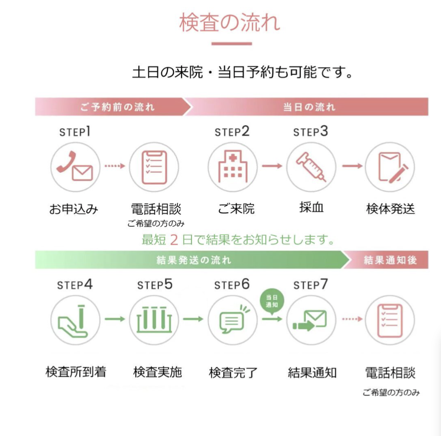 問診内容をもとに、後日、メールにてご案内メール、検査資料等・ご返信を差し上げます。